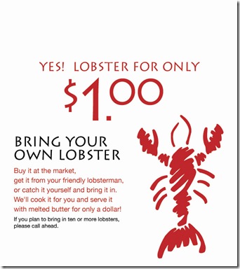 If you are from Maine and your family is in town and you don’t want the mess or you haul your own traps, bring ‘em all (the people and lobsters, not the traps) to Cuzzy’s. What a cool deal!